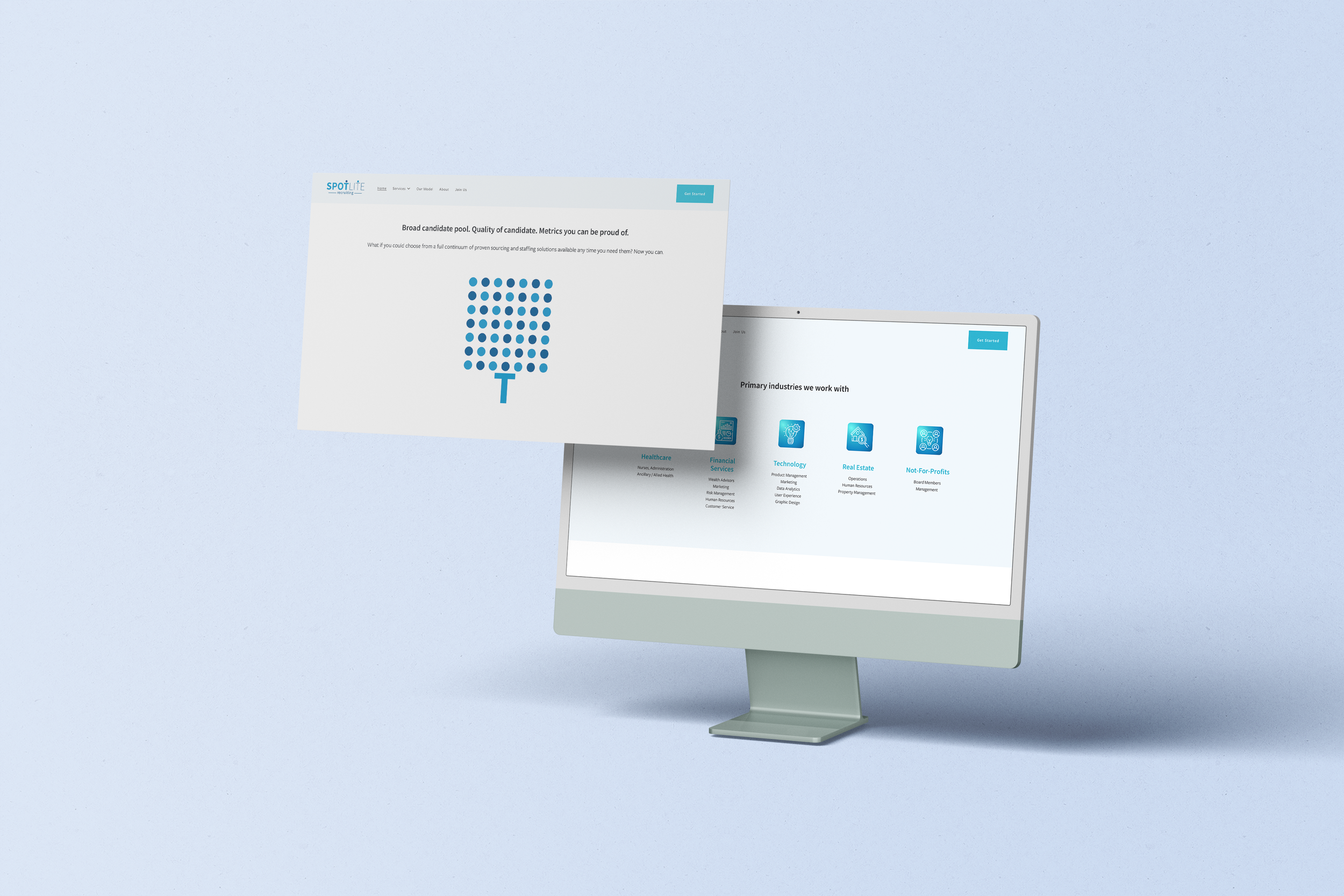 In addition to the logo, I created a set of branding assets that highlighted SpotLite's unique selling points. One asset emphasized their expertise in finding the right candidates, while another conveyed their dedication to sourcing talent from a diverse pool, reinforcing their focus on inclusion. These elements were carried through the website design and marketing materials, ensuring a consistent and impactful brand presence that resonated with both clients and candidates.